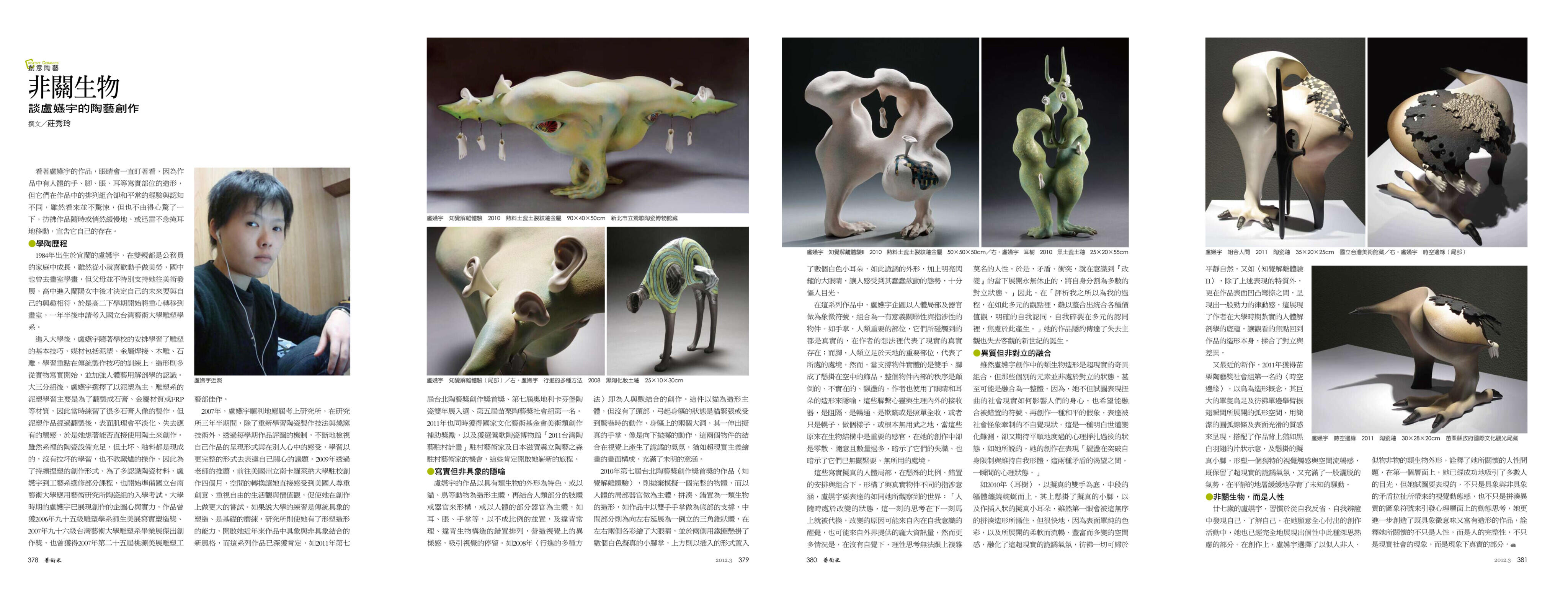 | 2012-03-05 | 非關生物 ── 談盧嬿宇的陶藝創作/非關生物 ── 談盧嬿宇的陶藝創作 | 藝術家 |
